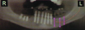 右写真はCT写真から解析したインプラントの理想埋入位置です。